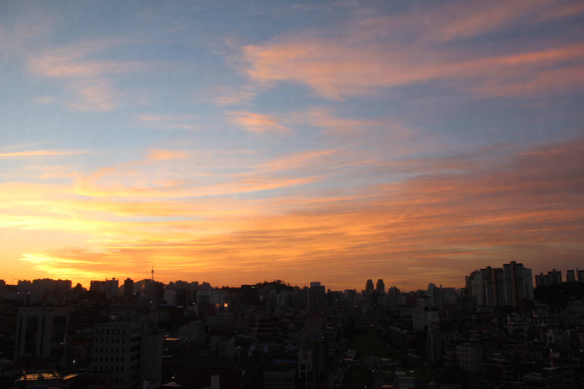 이삿날과 친구와의 사별이 며칠 간격이라 새로운 동네와 인사를 나누지 못했다. 떠나는 아쉬움도 만나는 설렘도 느끼지 못한 채로, 한 달 남짓의 시간이 꿈을 꾸듯 구름처럼 흘러 옅어졌다. 희미한 지난 몇 주를 돌아본다. 곧이어 새로운 삶의 공간을 둘러본다. 친구와의 영원한 이별에 적응하지 못하는 동안에도 세계는 또렷했다. 삼거리 대로를 면한 건물이라 창밖으로 주야장천 자동차의 주행 소리가 들리는 곳이다. 남산 너머에서 떠오른 해는 서쪽 하늘과 주홍빛 인사를 나누다 사라졌다. 책상에 앉으면 남산의 일출이 보이는 곳이기도 하다. 사람이 이동하면 소리가 난다. 우리는 황인종이니 나는 그 소리를 황색 소음이라 부르기로 했다. 백색 소음처럼 공간을 자연스럽게 채우는 그 소리가 나는 좋았다. 황금들녘처럼 따뜻한 기운이 느껴지기도 했다. 황색 소음이 들리면 때때로 홀로 물었다. 어디로 가시나요? 무엇을 위하여?