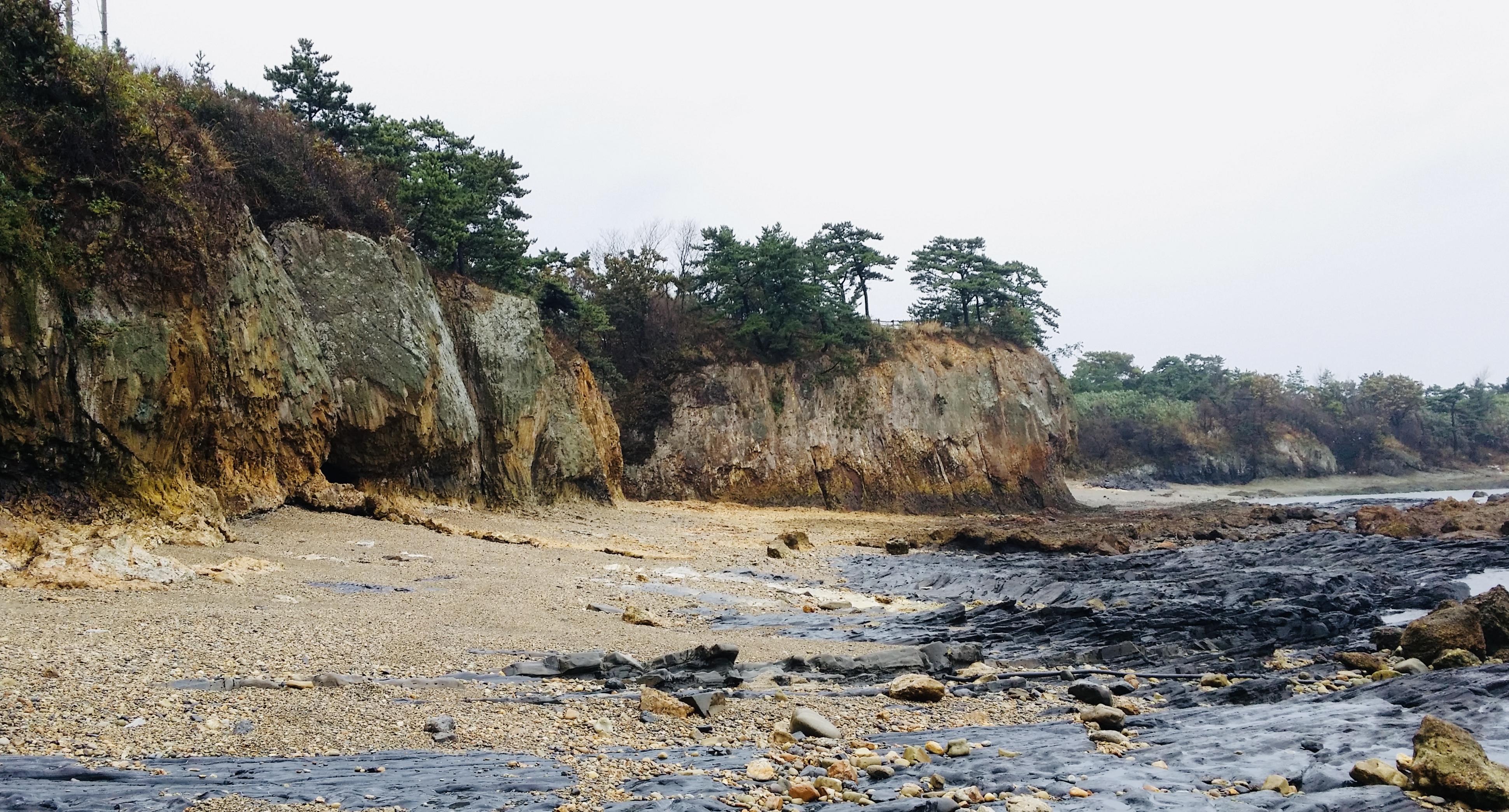 모항 해수욕장과 채석강은 기대에 미치지 못한 풍광이었다. 바다는 하늘빛을 반영한다. 와우그랜드투어 때는 화창했던 하늘 덕분에 모항의 앞바다가 보석처럼 빛났다. 이번엔 달랐다. 우중충한 잿빛 바다가 펼쳐졌다. 멋진 풍광이 아니어서 속상했다. 우리 가족은 경상도 사람들이다. 감탄은 드물거나 짧았다. 경상도 전형의 무뚝뚝함과 심드렁함이 자연스레 우러나곤 했다. 채석강을 경상도의 감성으로 바라봤던 것 같다.
